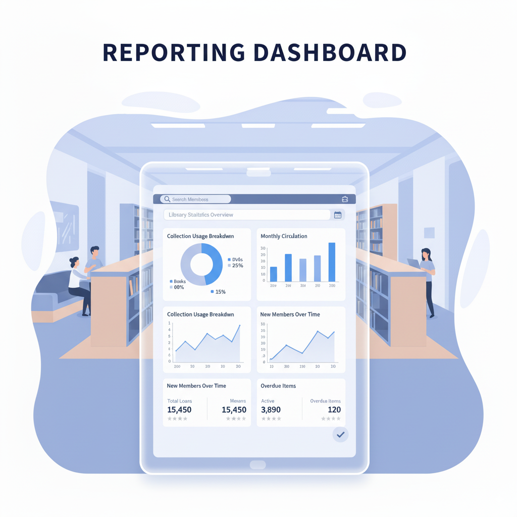 Generate insights like "Most-Borrowed Titles" or "Monthly Activity" for better decision-making.