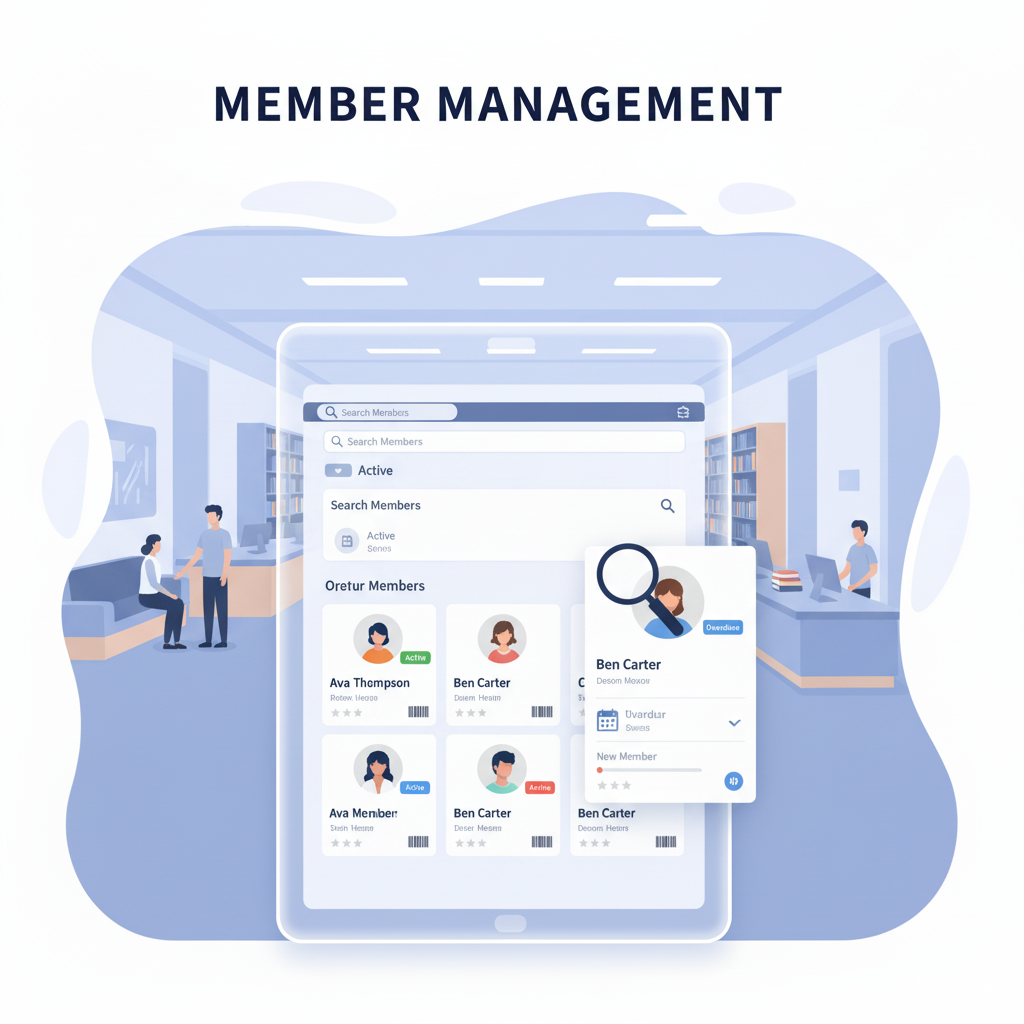 Assign member IDs, track checkouts, and send automated reminders for overdue items.